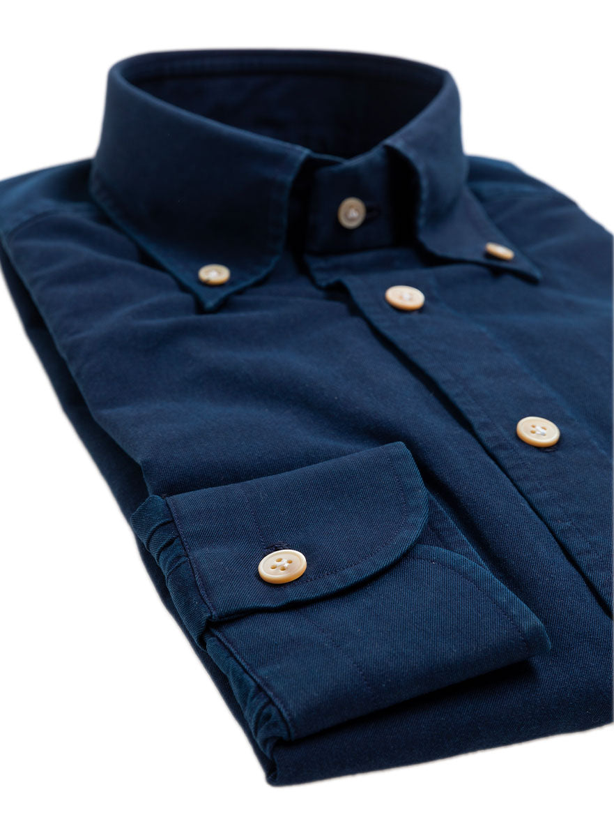 We source the best fabrics to produce top-notch understated staples and this denim 100% cotton shirt from Thomas Mason captures that ethos. This piece is a sterling weekend choice with a pair of pressed chinos, but also wearable for work occasions mixed with a sportive jacket and for example grey pants. The shirt is totally handmade in Italy in our atelier in Naples and therefor finished with the same techniques as our bespoke shirts.